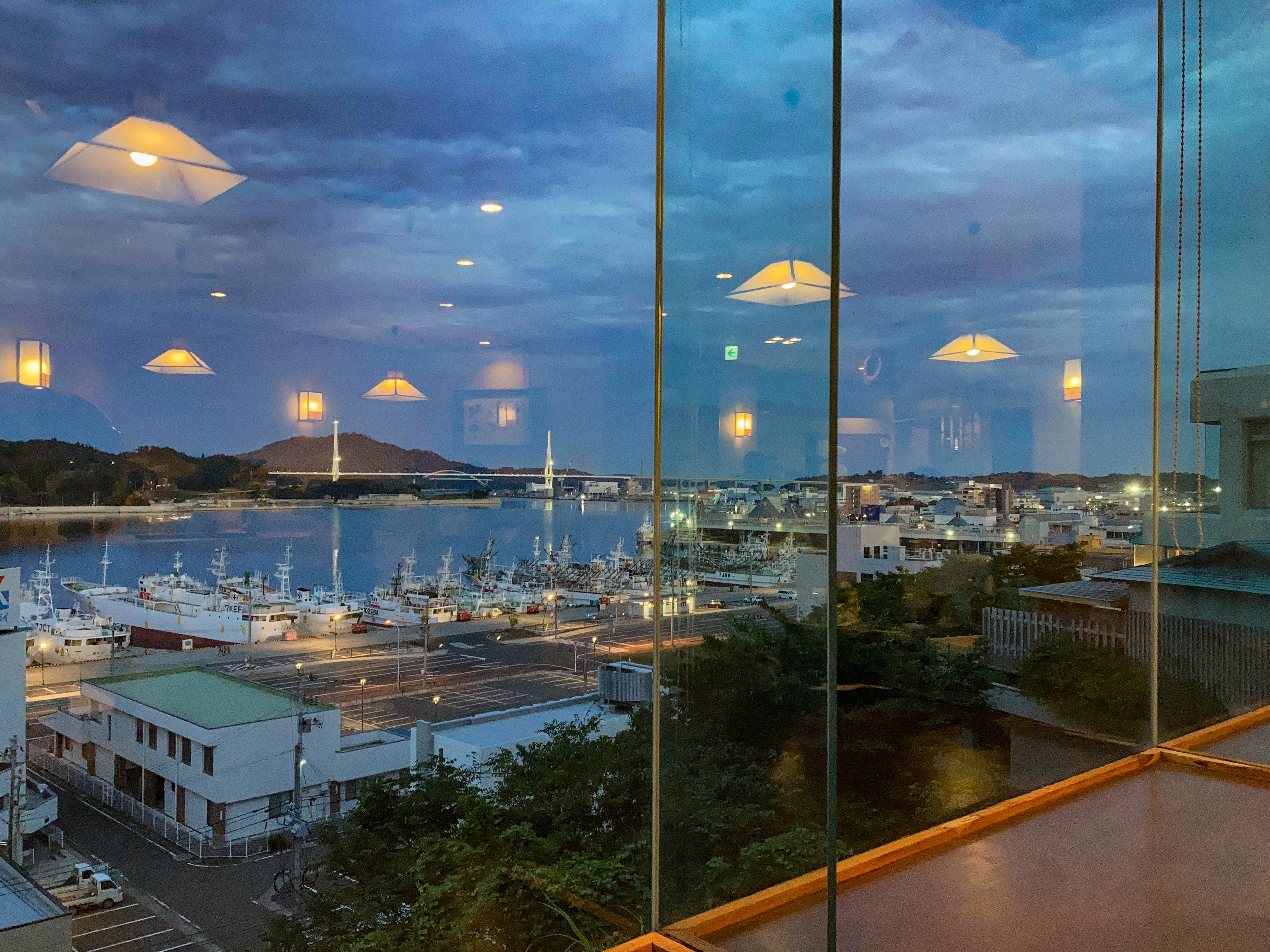 屋上に登ると内湾の夜景を見ることができます。
