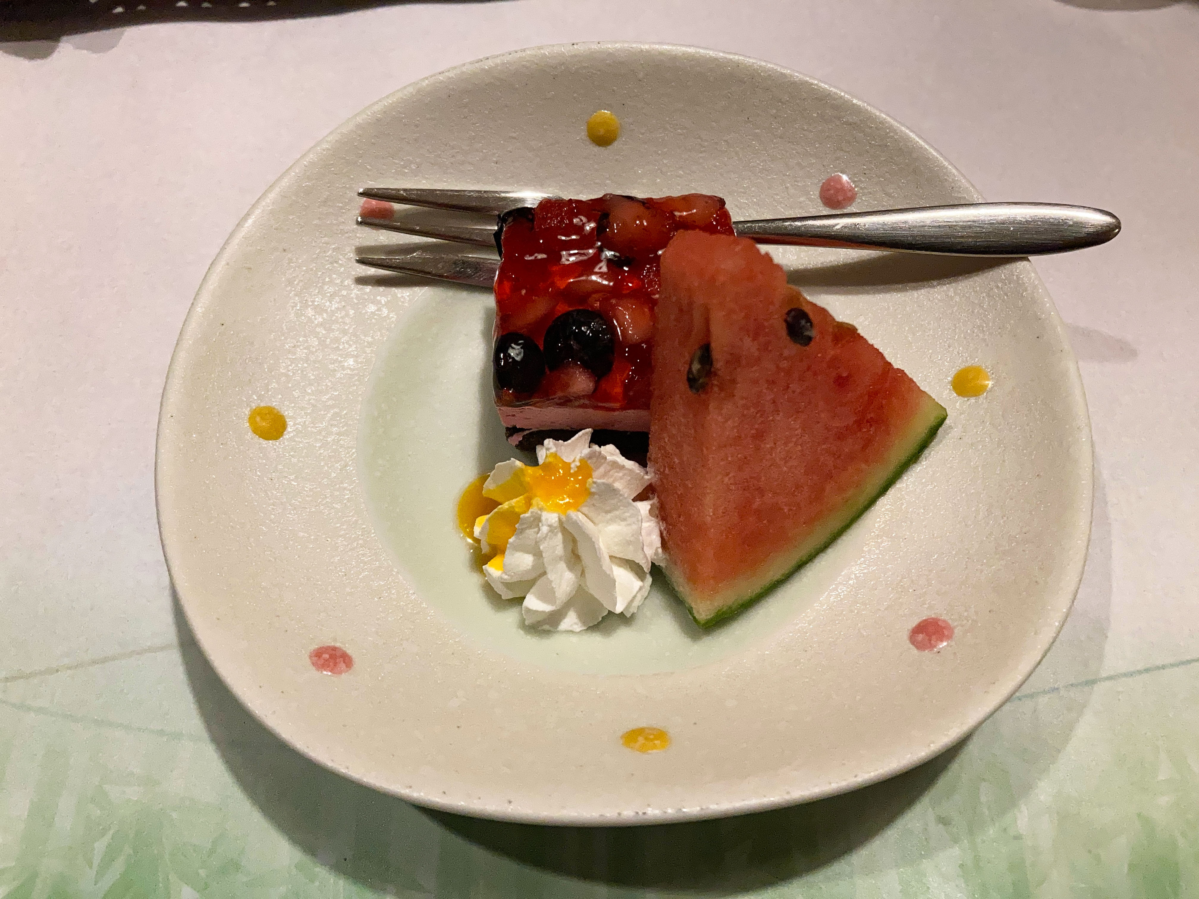 デザートのケーキも最後に締めに美味しく頂けました。