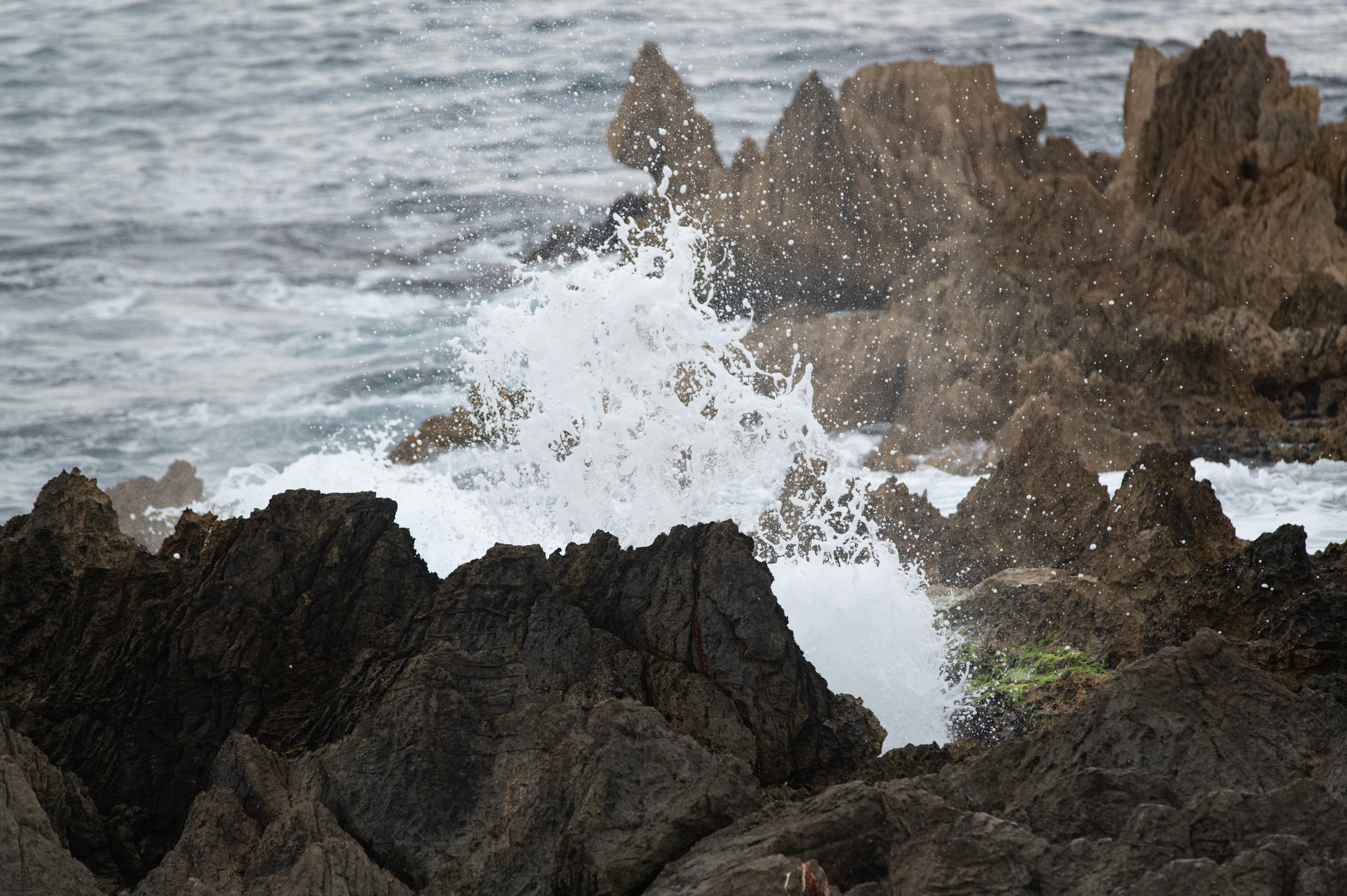 有名な潮吹岩を見てきたのですが、そんなに勢いよく吹き出してはいませんでしたが、写真を収めることができました。