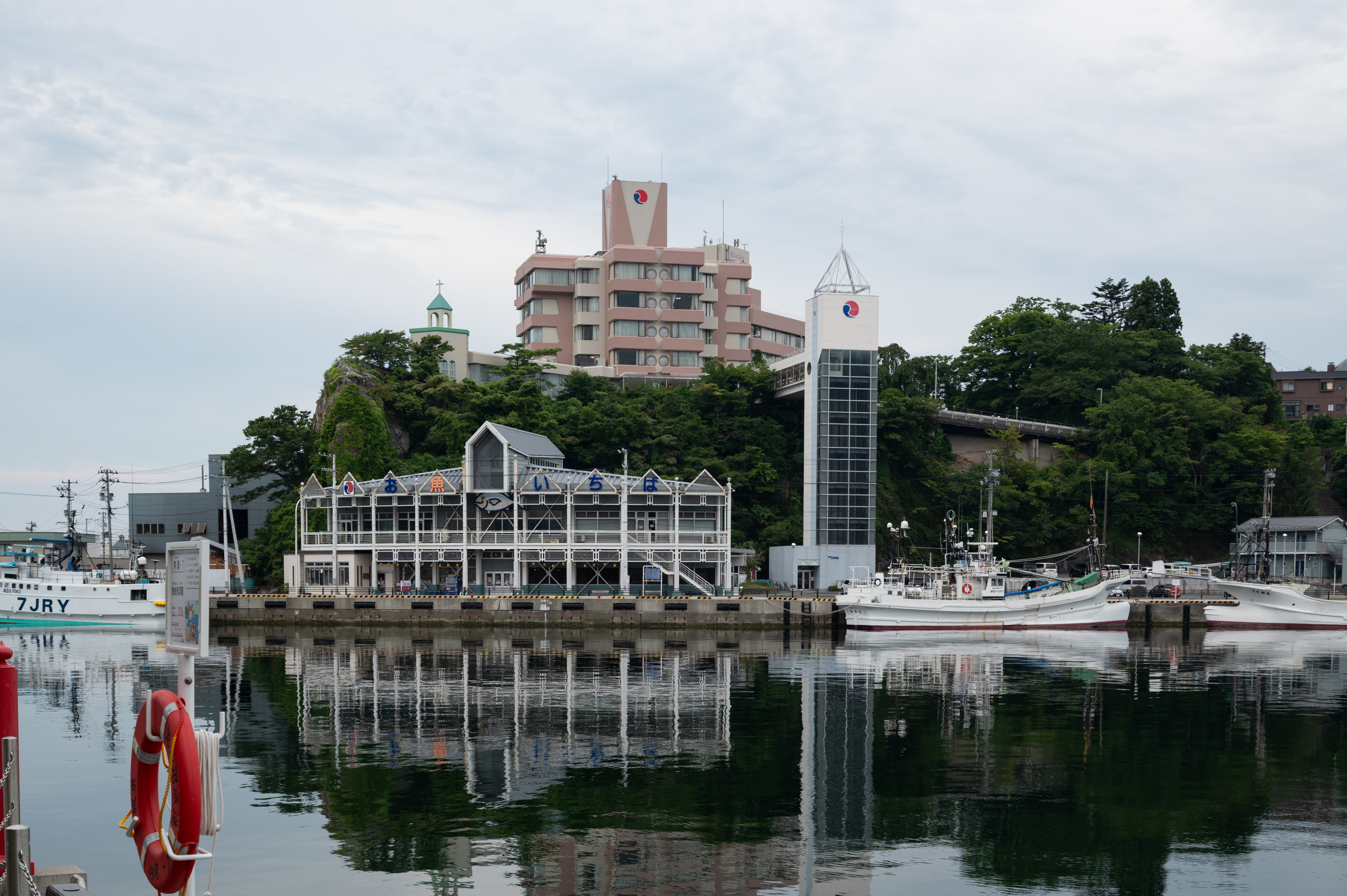 気仙沼湾の内湾を見下ろすことができる高台にある「気仙沼プラザホテル」です。駐車場からホテルに上がることのできる巨大なエレベータがあります。