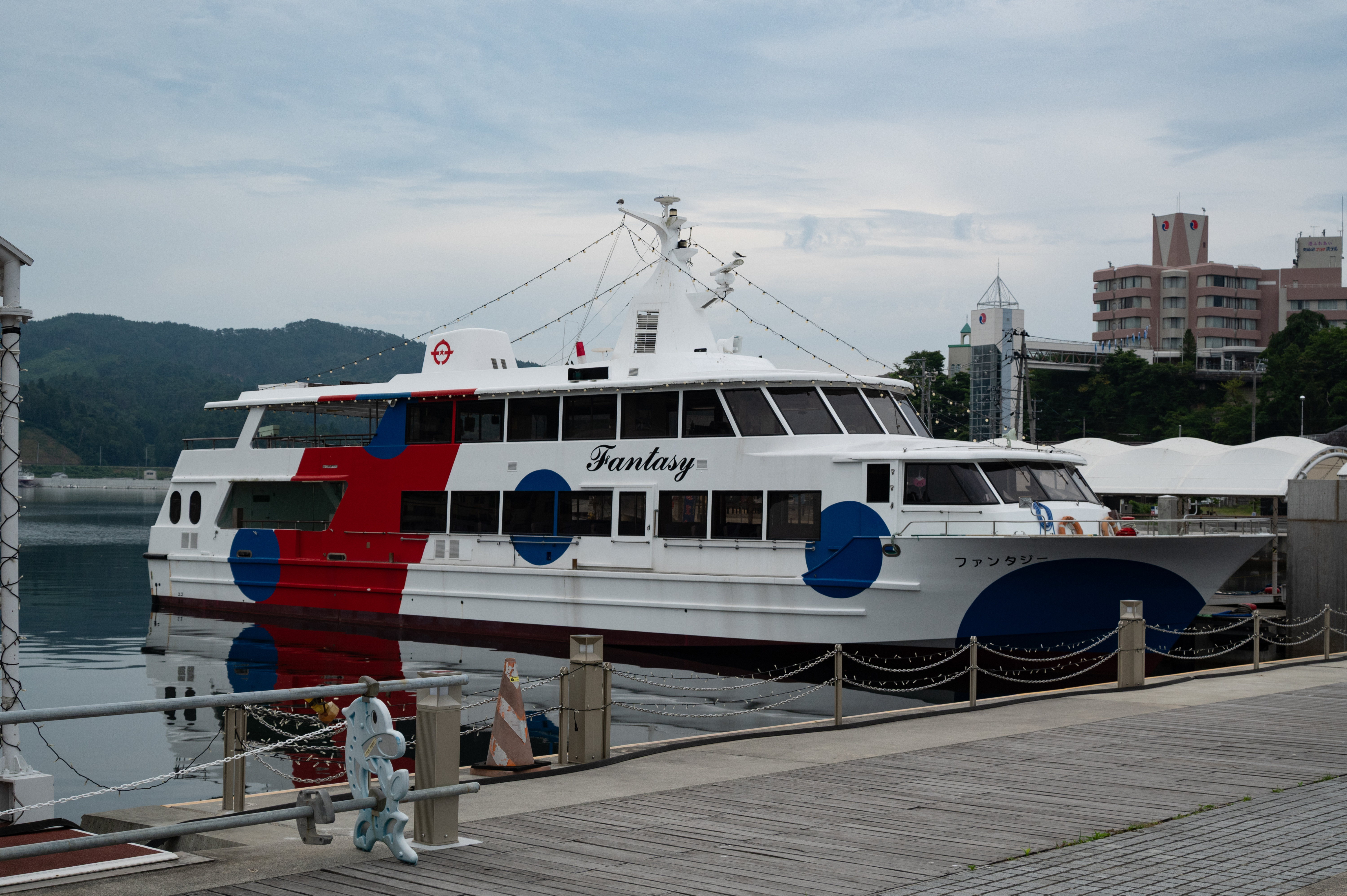 この建物の斜め向かいに、遊覧船の発着所があります。