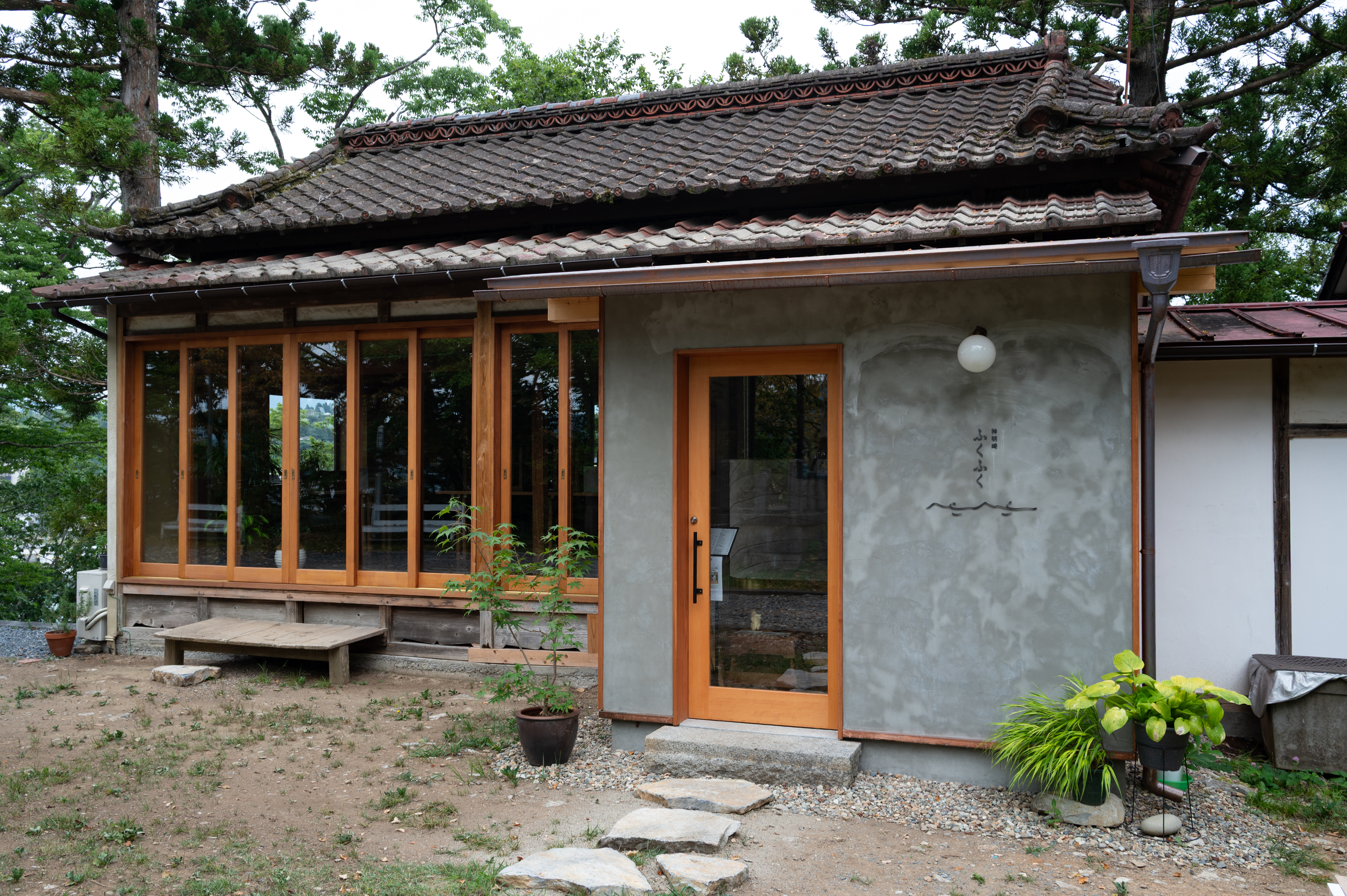 「浮見堂」から階段を登っていくとある喫茶店の「神明崎ふくふく」があります。朝早いので開店前です。