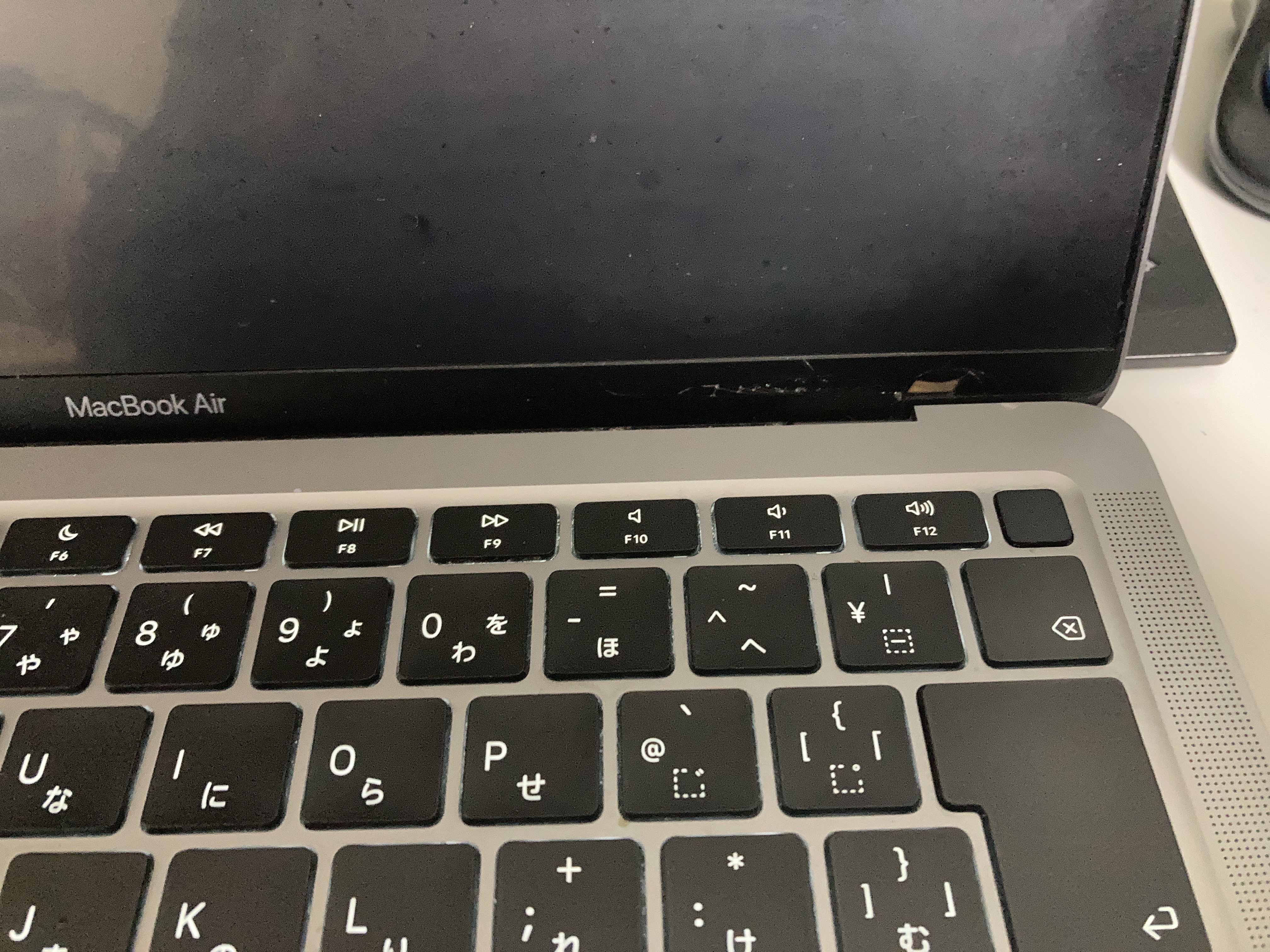 右側のヒンジあたりに傷があり、これが原因のようです。