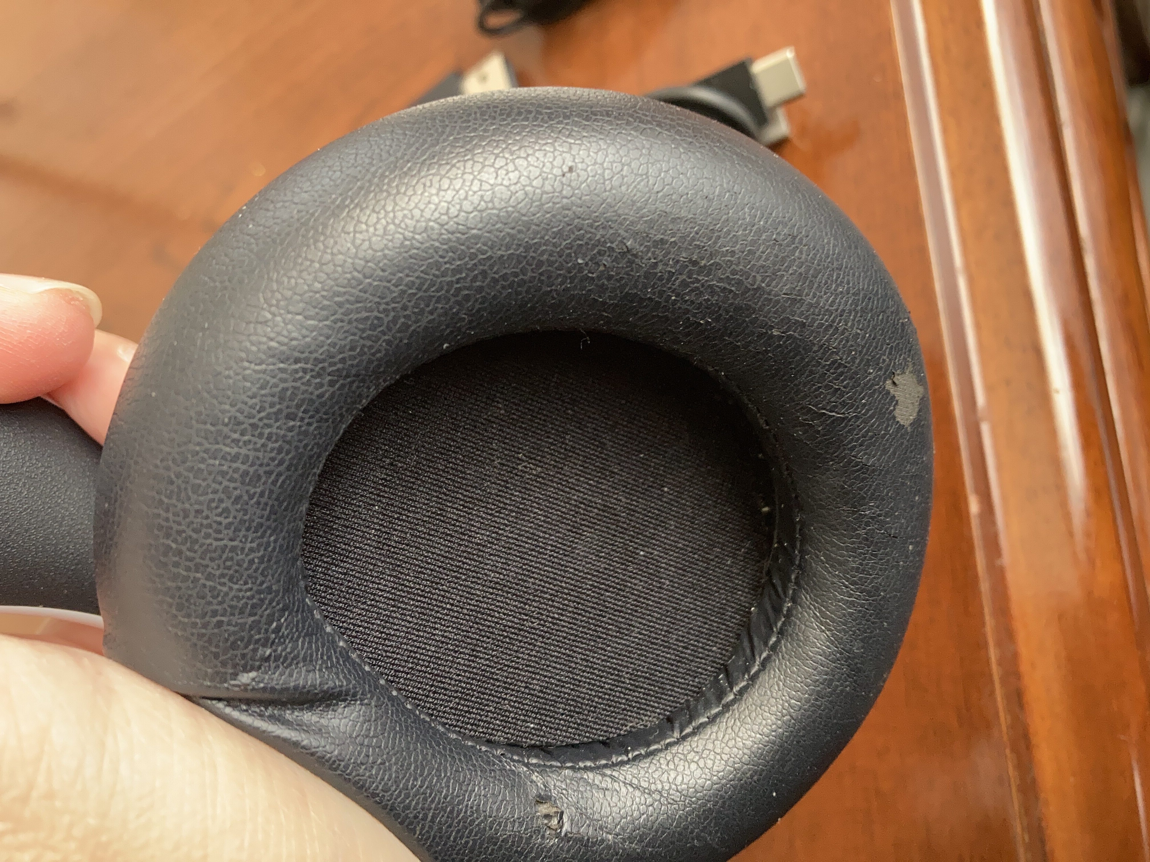 左右ともに剥がれています。ネットで調べると耐久性は良くないようです。アマゾンで交換用のイヤーパットが多数出ているのと、ネットで交換レビューの記事をアップしている方がいるので、後日交換しようと思います。